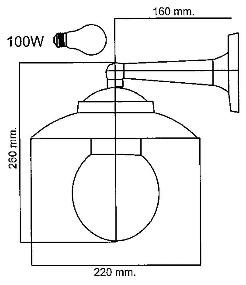Lampada fissaggio a parete.Ø testa mm. 210, Ø vetro mm. 140