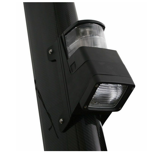 Luce combinata di illuminazione coperta e via motore, per imbarcazioni fino a 20 mt. Omologato R.I.N.A. Montaggio con alette flessibili per diverse misure di albero. Visibilità 3 miglia.