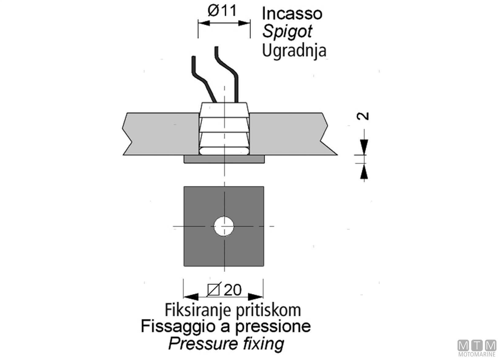 Luce LED a incasso impermeabile (IP67) per interni ed esterni. Corpo in Ottone Cromato, viti in Acciaio Inox. Voltaggio universale 12/24V.