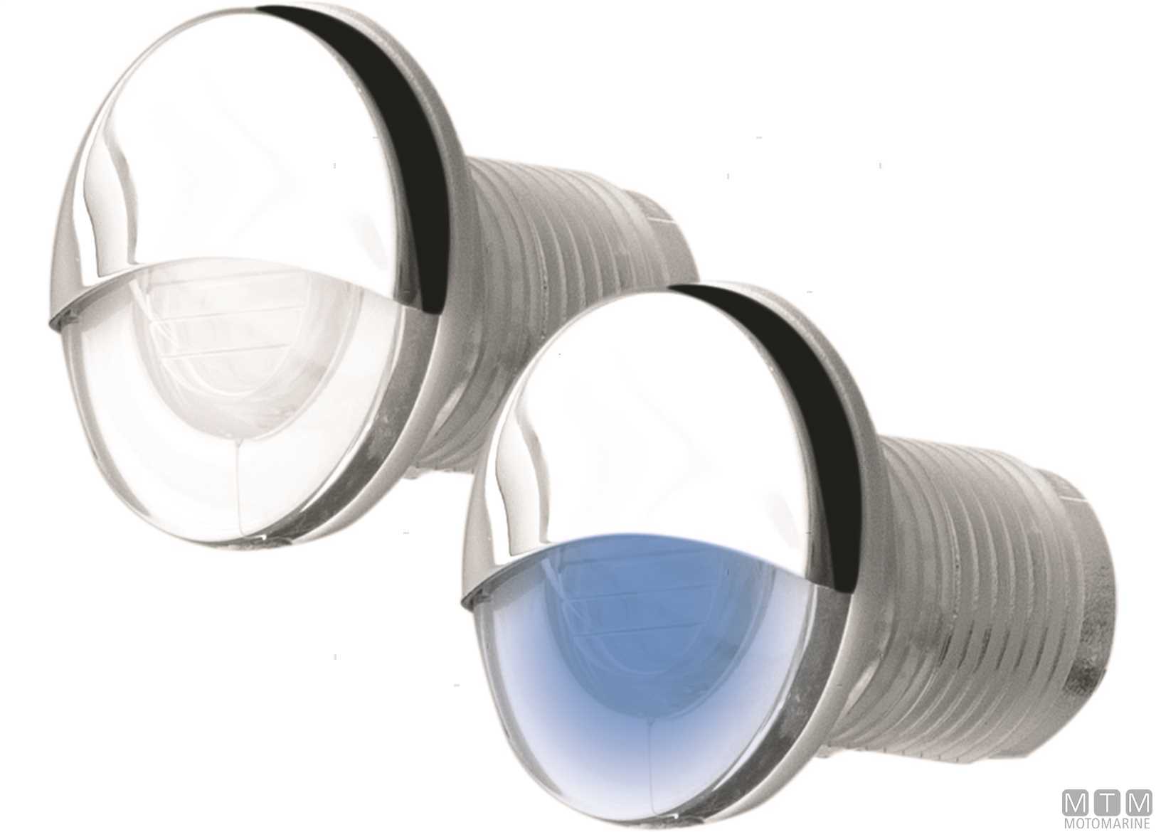 Luci di cortesia LED 12V impermeabile IP68 a incasso in Tecnopolimero con copertura in Acciaio Inox. Luce bianca 6300°K oppure blu, consumo 0.4W