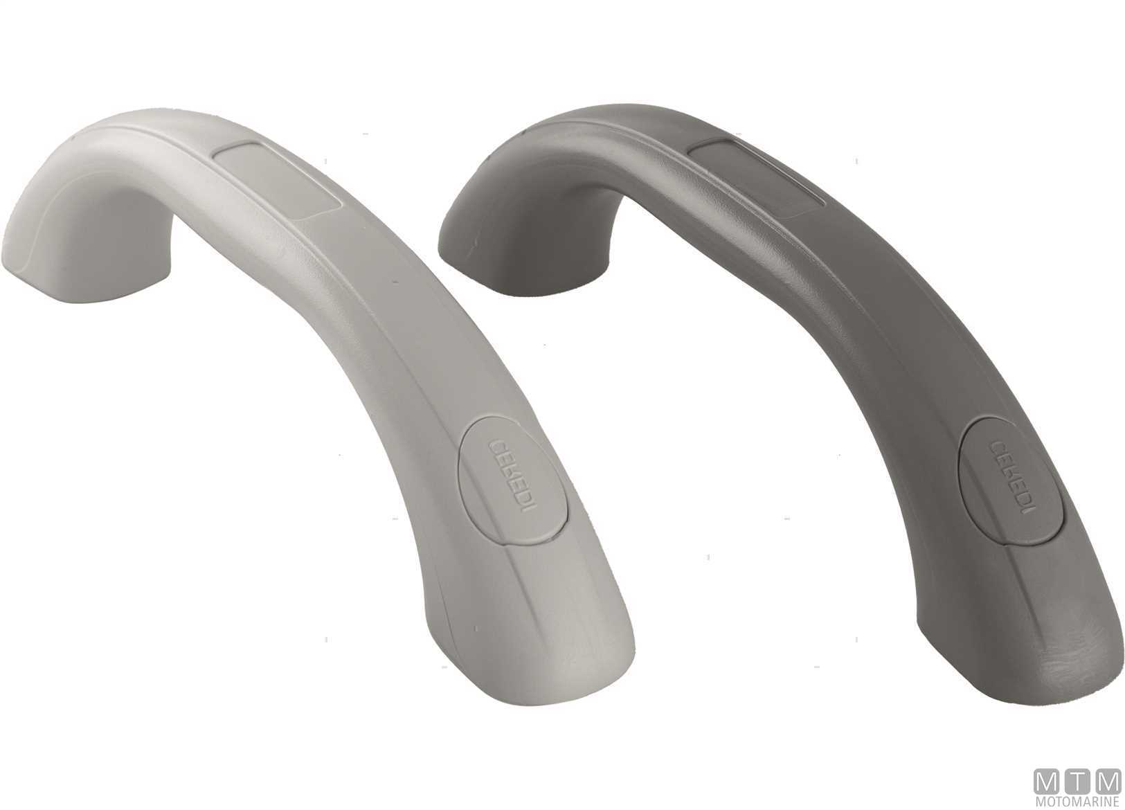 Maniglie corte (20 cm) in morbido PVC con anima rinforzata. Montaggio con viti passanti a scomparsa. Interasse viti 155mm