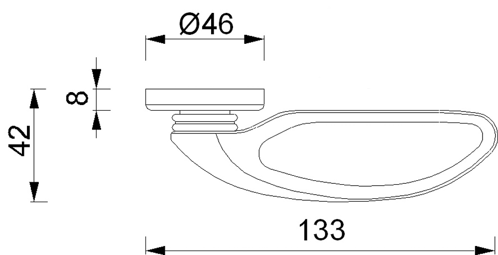 Coppia maniglia completa di bocchetta, per rafforzare la molla dellaserratura e permettere il montaggio senza viti esterne.lungh. mm. 133, sporg. mm. 42, rosetta Ø mm. 46, quadro mm. 8
