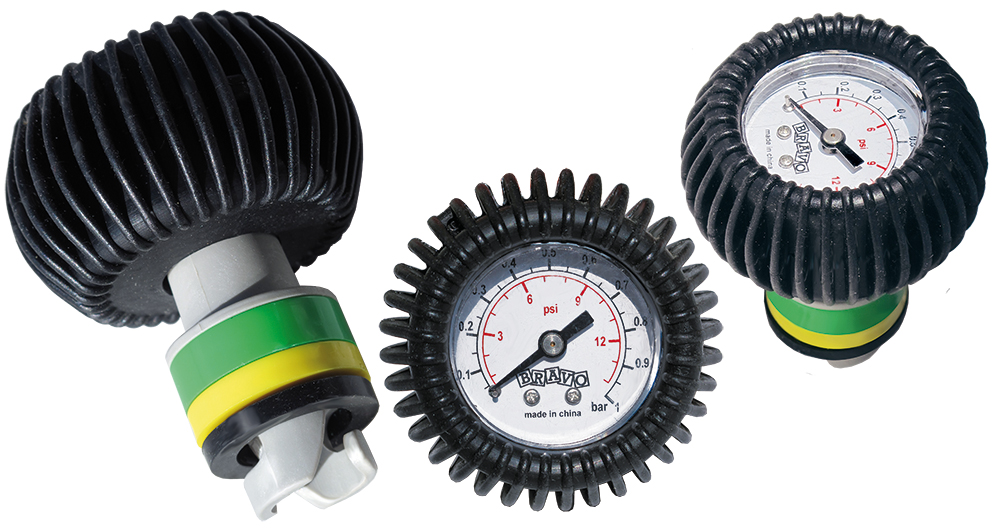 Manometro Controllo Pressione Manometro adattabile e di precisione per controllo della pressione di gonfiaggio fino a 1 bar per battelli pneumatici, per massimo comfort e sicurezza. Adatto per varie valvole.