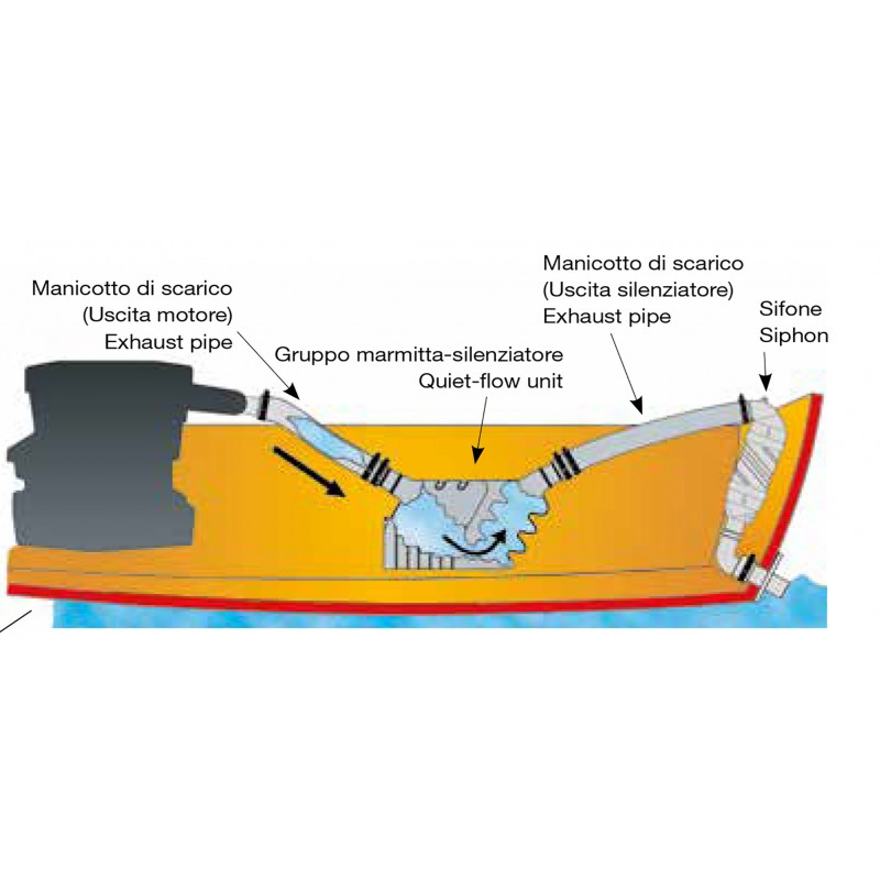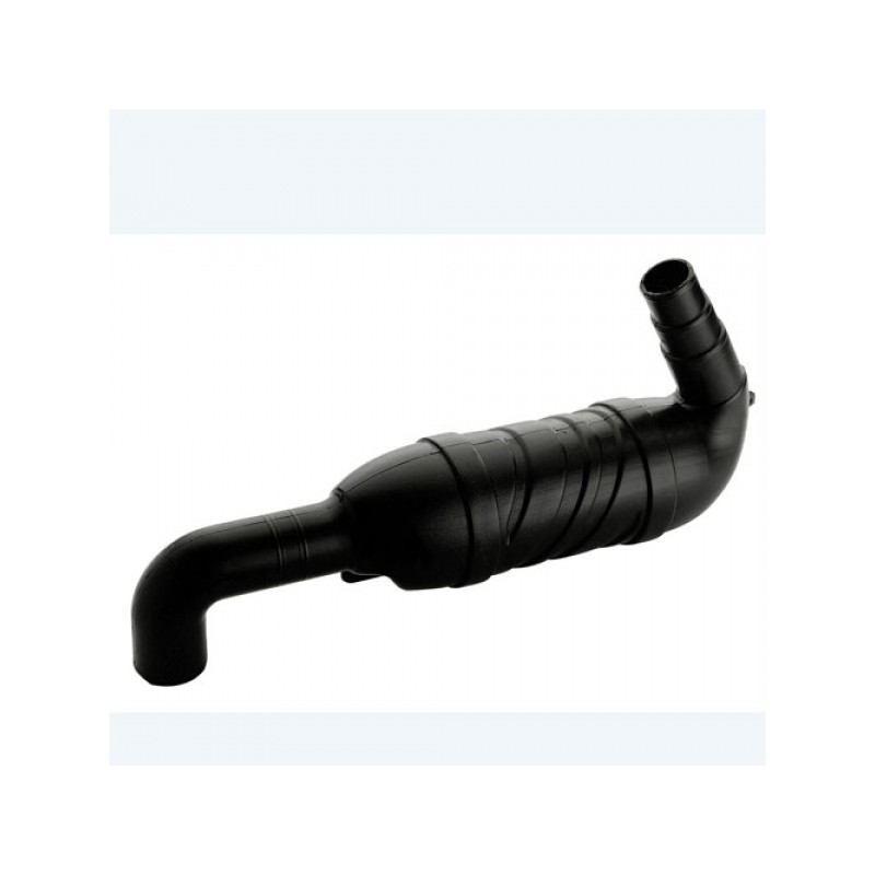 Marmitta di scaricoin polietilene ad alta densità.Uscita girata di 120° per tubi Ø .mm.40-45-50, lung. mm 110