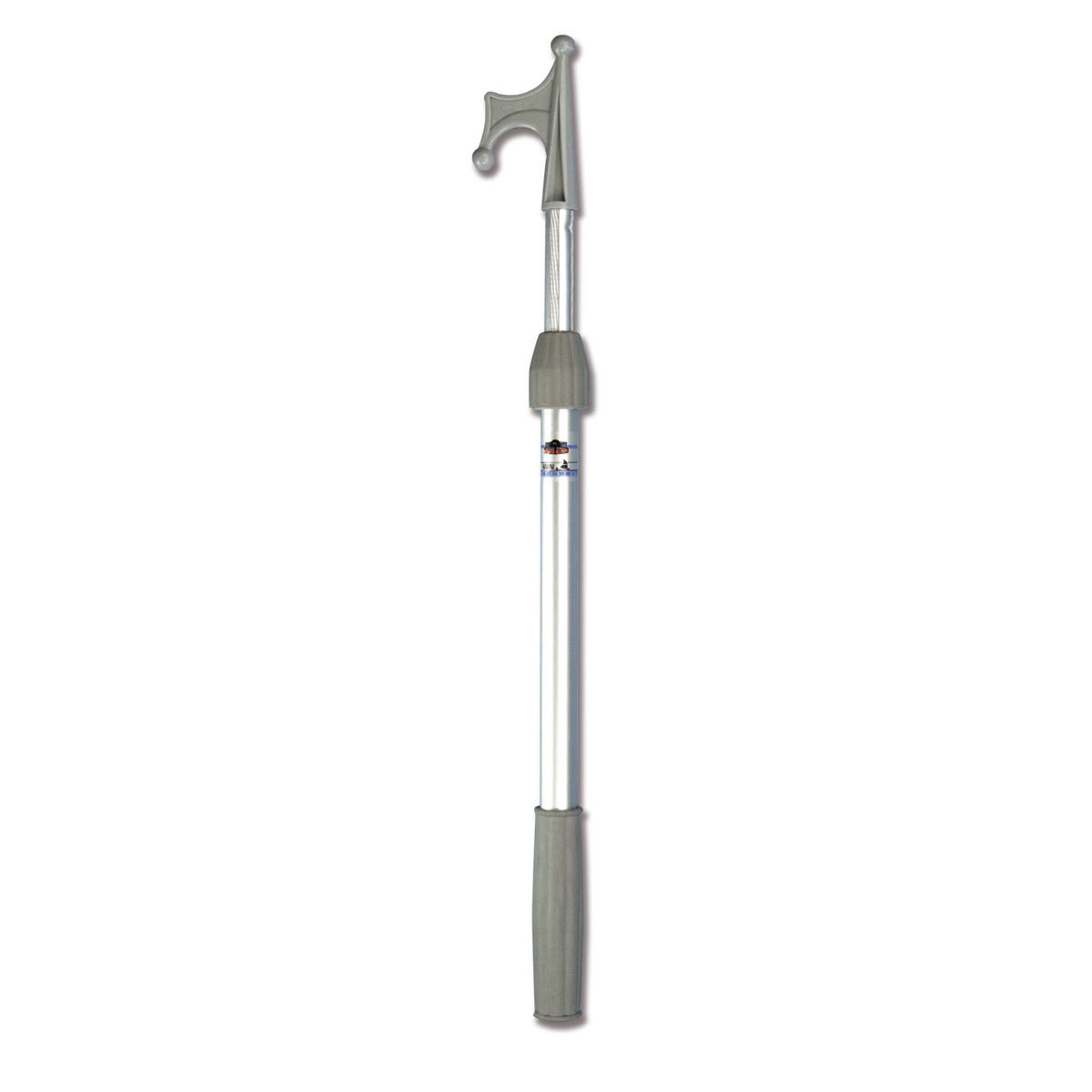 Gancio in nylon, manico in alluminio anodizzato e manopola terminale in gomma.