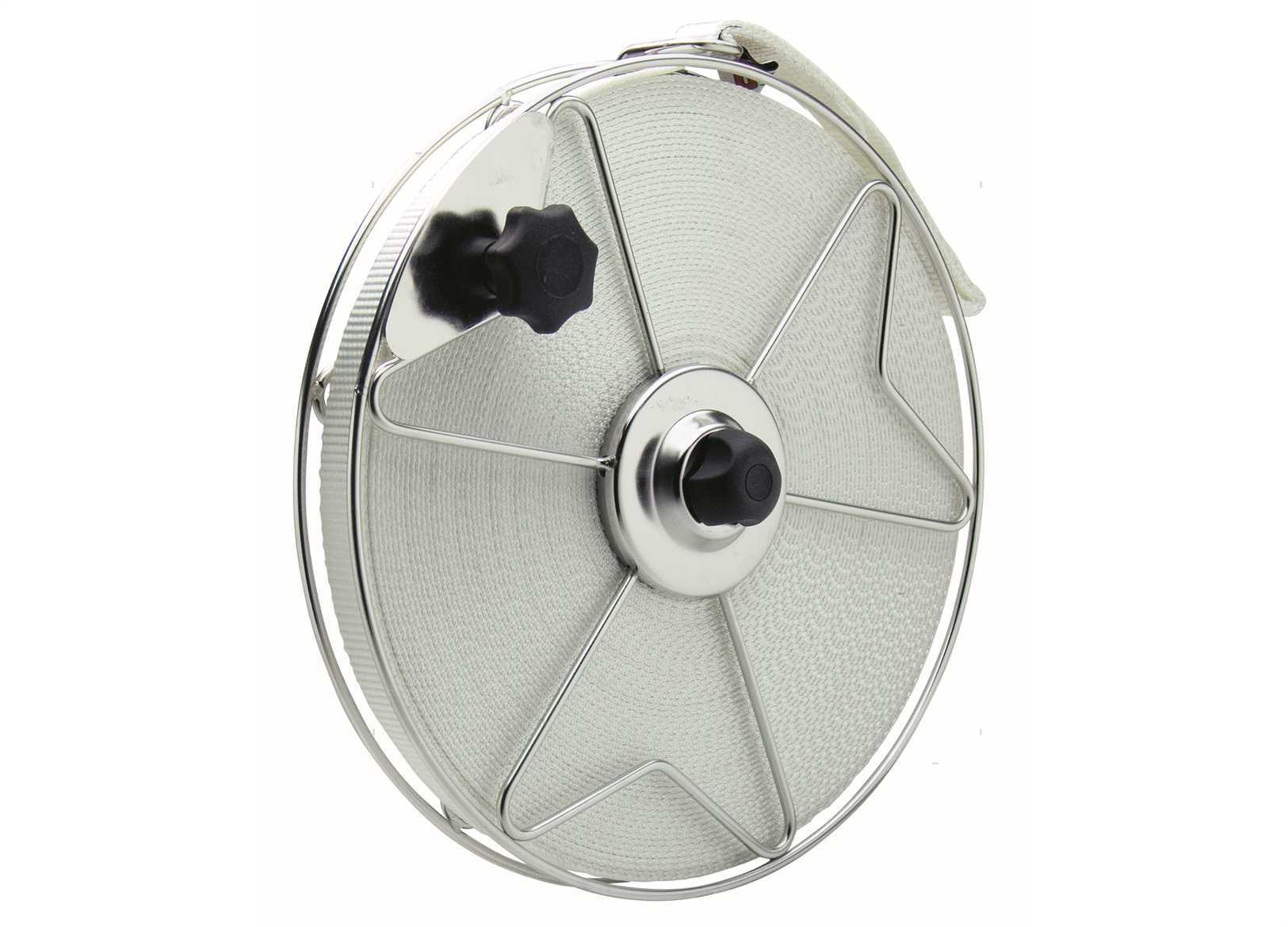 Sistema pratico per un ormeggio veloce e sicuro composto da una cinghia piatta morbida e resistente su rocchetto in Acciaio Inox 316 con Freno-Frizione regolabile. Attacco universale per tubo o a parete.