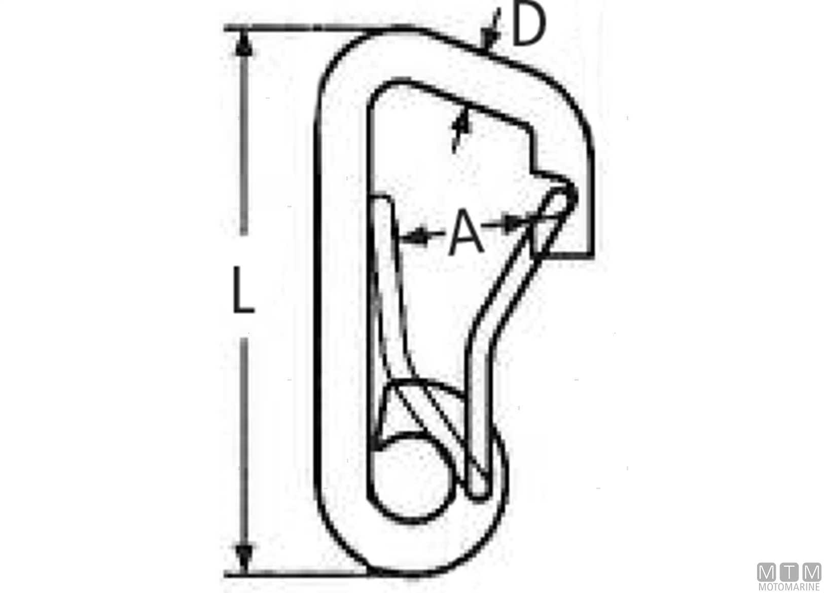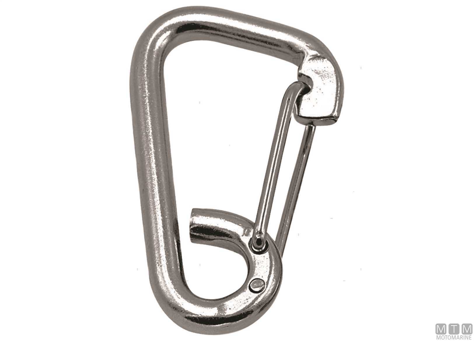 Moschettone in Acciaio Inox A4-AISI 316 tipo largo con ampia apertura e ritorno a molla.