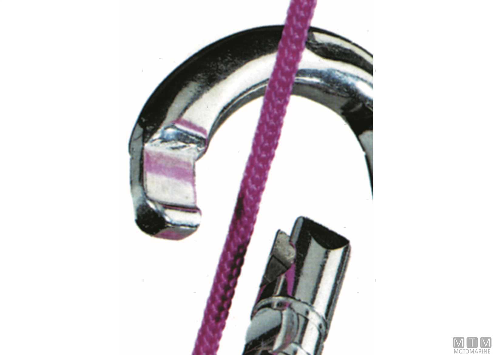 Moschettone in Acciaio Inox AISI 316 con sistema di aggancio antigrip. Non impiglia le cime.