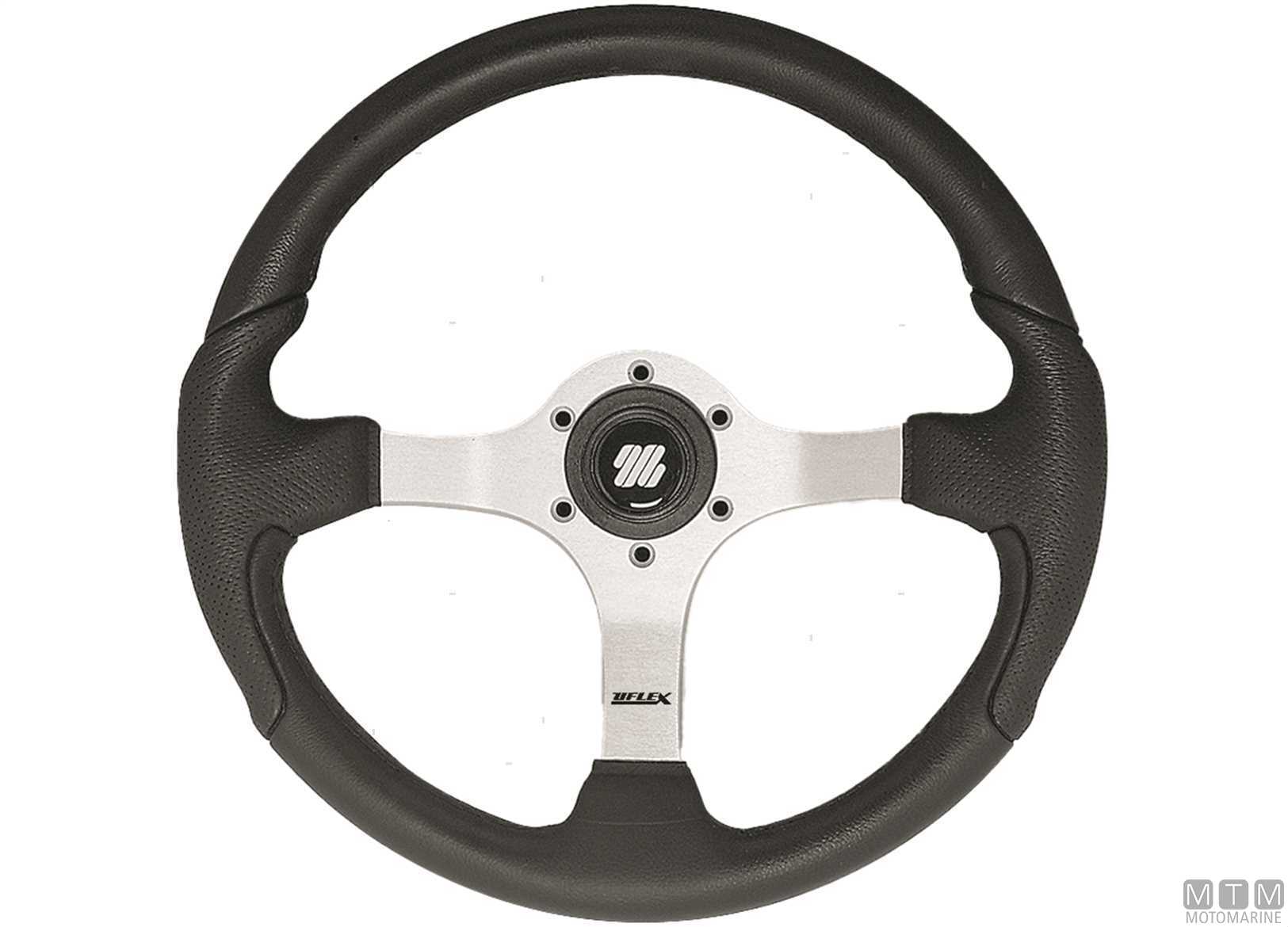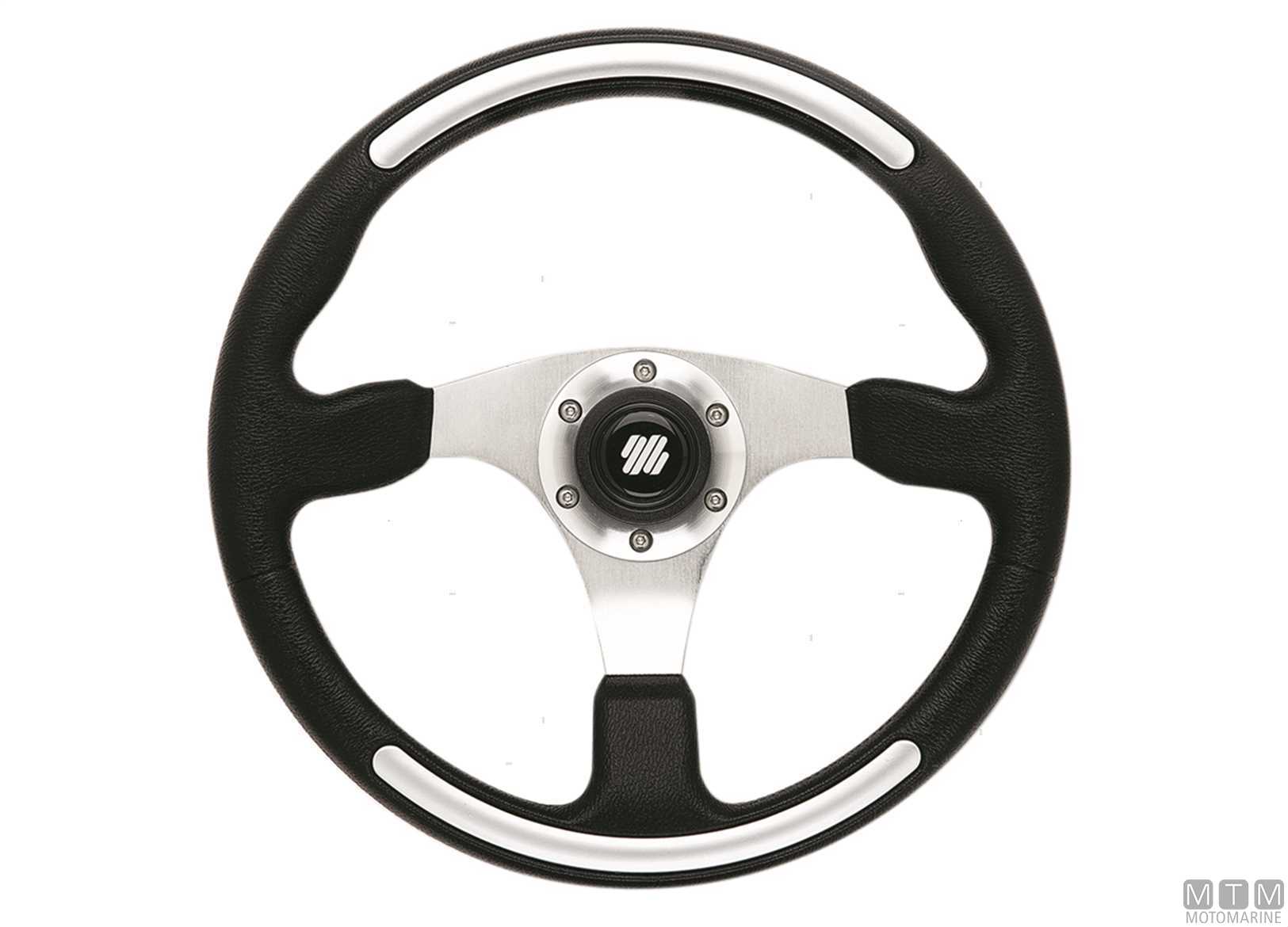 Volante con telaio in Alluminio Anodizzato e impugnatura morbida in Poliuretano. Certificato CE-ISO23411 e conforme ABYC. Il mozzo con tappo va ordinato separatamente.