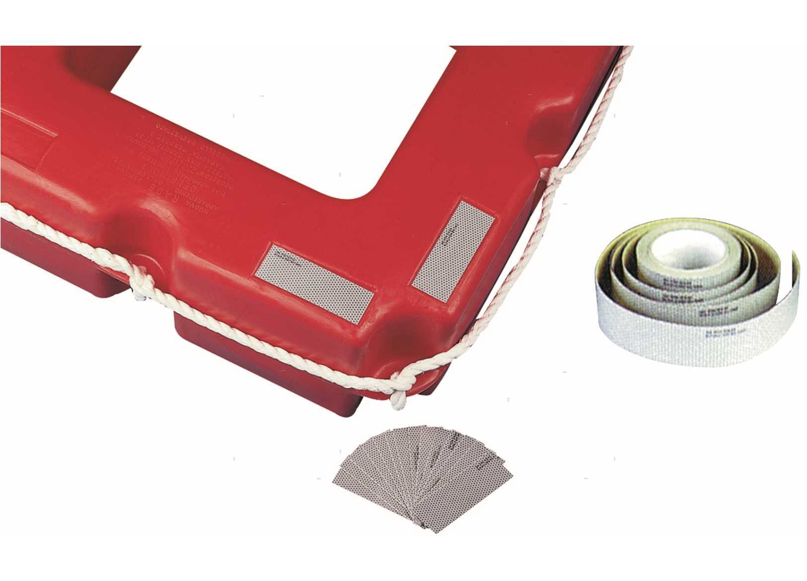 Nastro riflettente adesivo a norme Solas - omologato R.I.Na. Per zattere rigide e salvagenti anulari. Confezione: rotolo da 15 e 45 mt.
