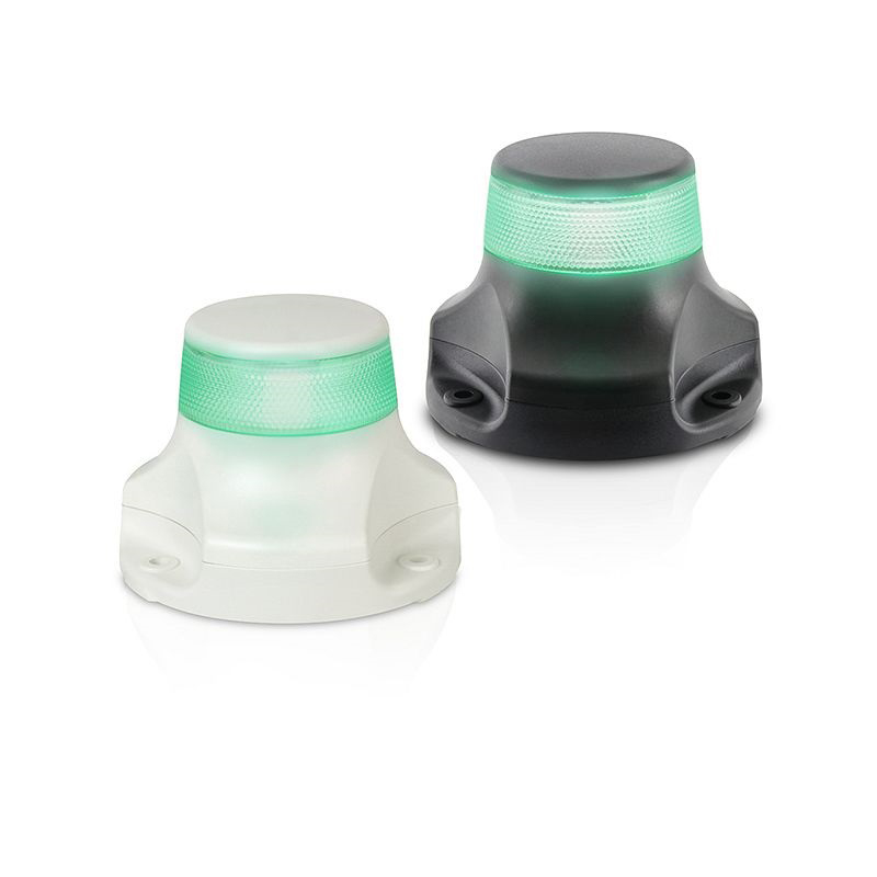 Fanali di via testa d'albero per imbarcazioni fino a 50 metri. Lenti in Grilamide e cassa stagna IP67 in materiale antishock resistente a corrosione e raggi UV. Consumo ultra basso, precablati con cavi marini, dotati di circuito di protezione per picchi di tensione e inversione di polarità. Certificati MED96/98EC, CE(EMC), IMO-COLREG, USCG e ABYC.