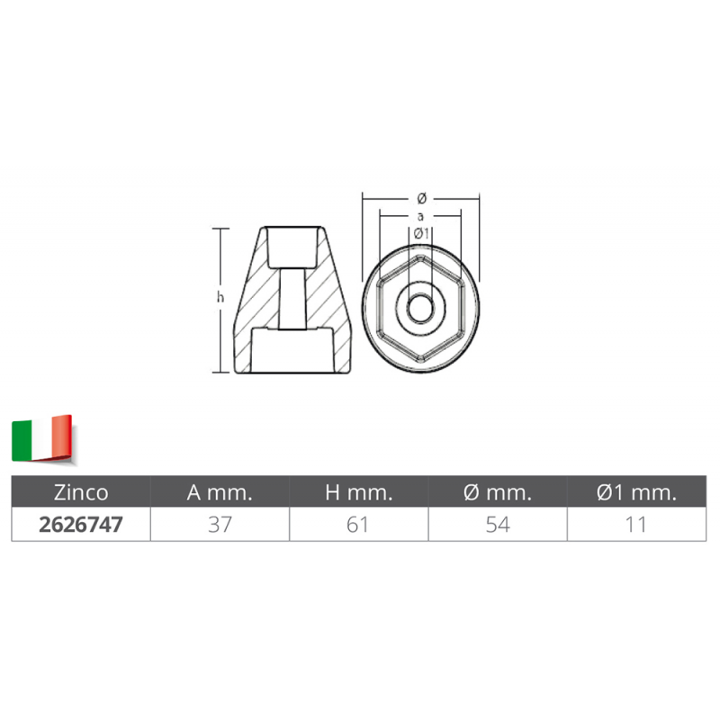 Anodo piede 50/200 HP zinco diam. foro 8