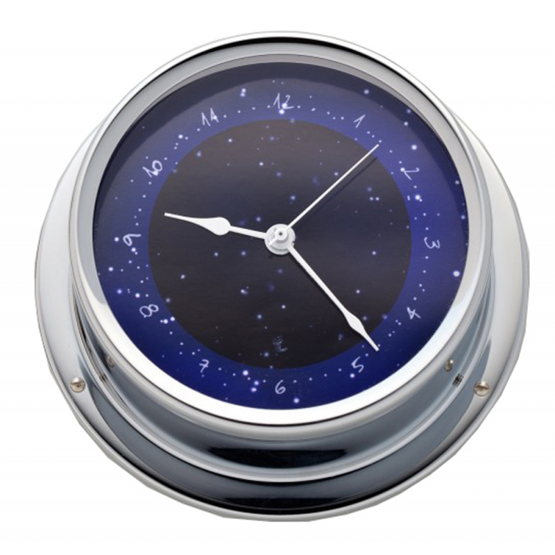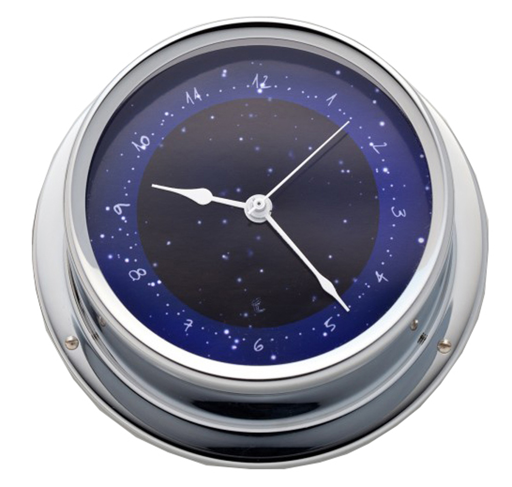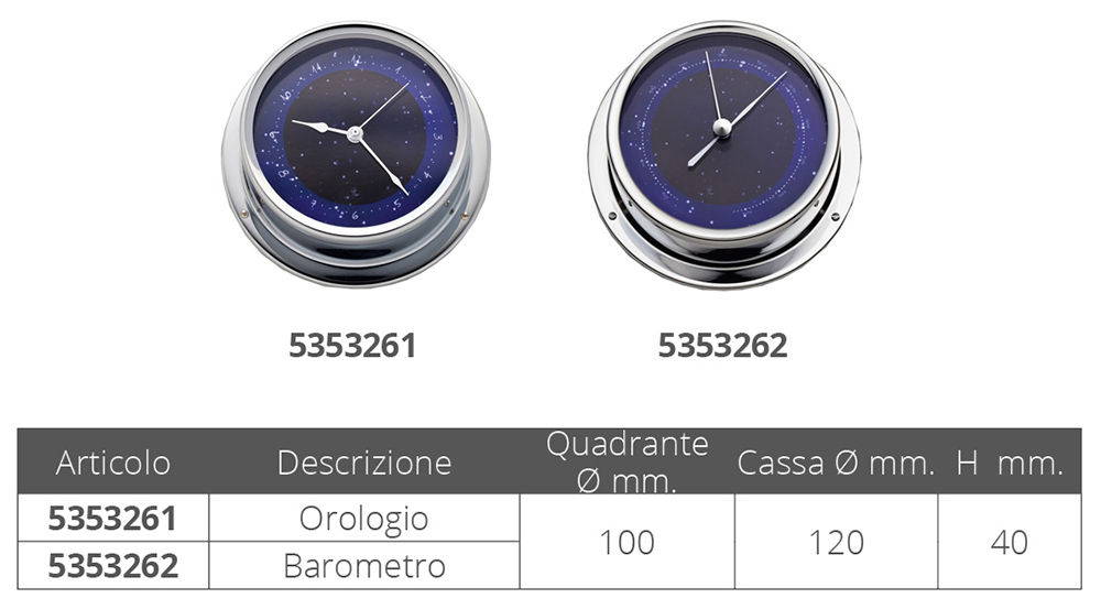 Strumenti di bordo in ottone cromato con quadrante blu, quadrante Ø mm. 100, Ø esterno mm. 120 x 40 h