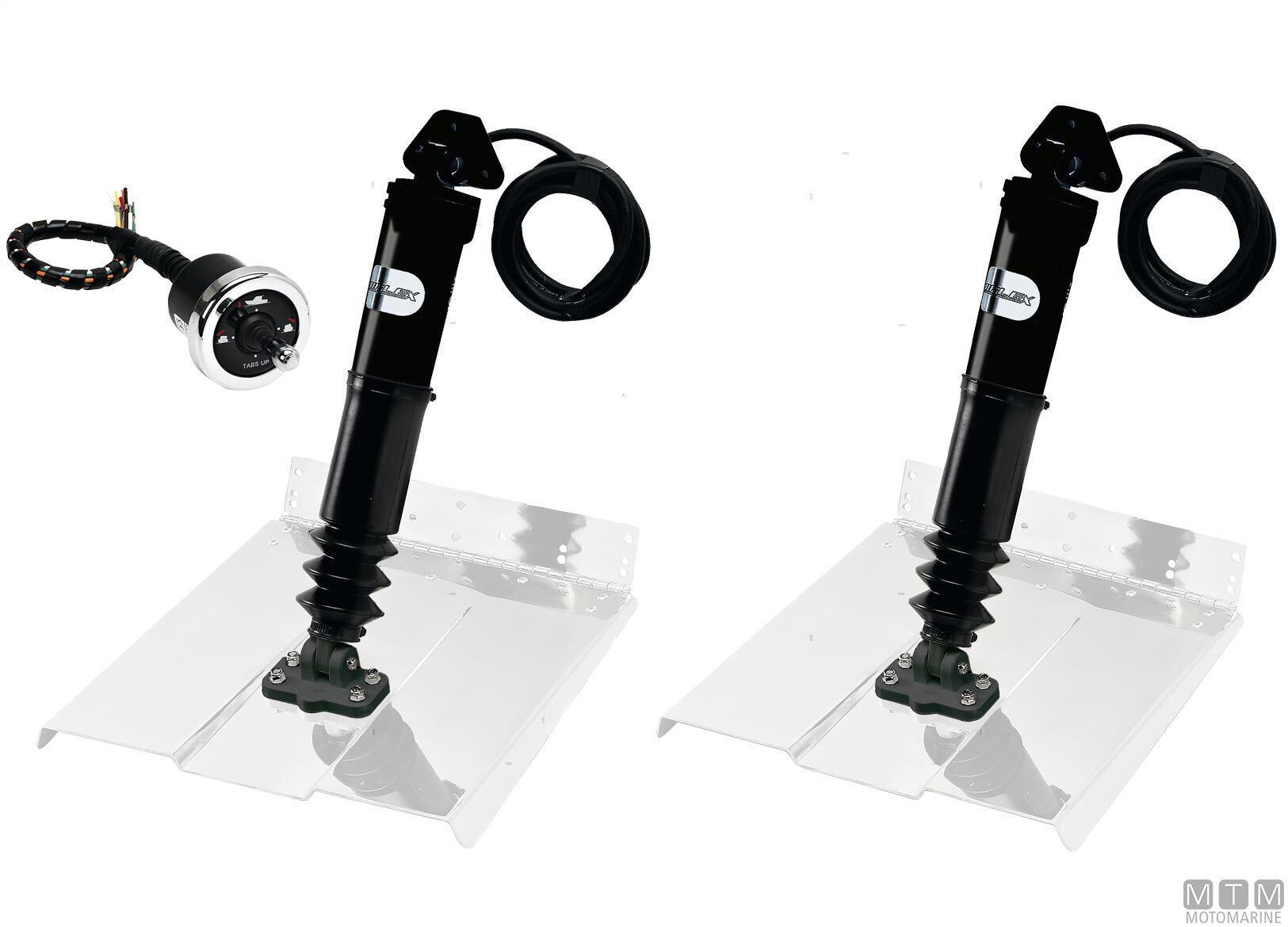 Kit trim elettromeccanico 12V Uflex esente da manutenzione e di facile installazione. Non richiede centraline elettriche, idrauliche o tubazioni. Comando con joystick che permette di allineare le pale per regolare l'assetto in rollio ed in beccheggio. La scatola comando comprende anche la funzione auto-line up per l'allineamento automatico dei flaps quando disattivati, inoltre funziona da switch per un eventuale joystick seconda stazione. Il kit comprende due attuatori AT e la scatola comando con joystick Cromato. Le pale in Acciaio Inox vanno acquistate separatamente, possono essere standard oppure dal profilo high-performance lucidate a specchio.