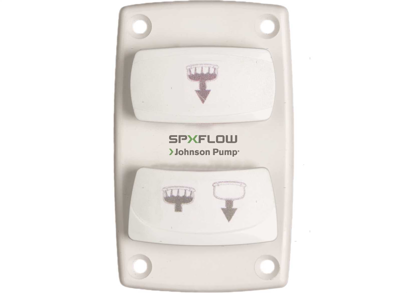 Pannello di controllo a due interruttori per separare il risciacquo dallo scarico quando si utilizza una pompa di carico acqua esterna.