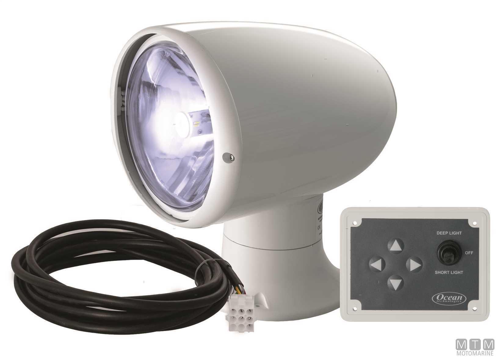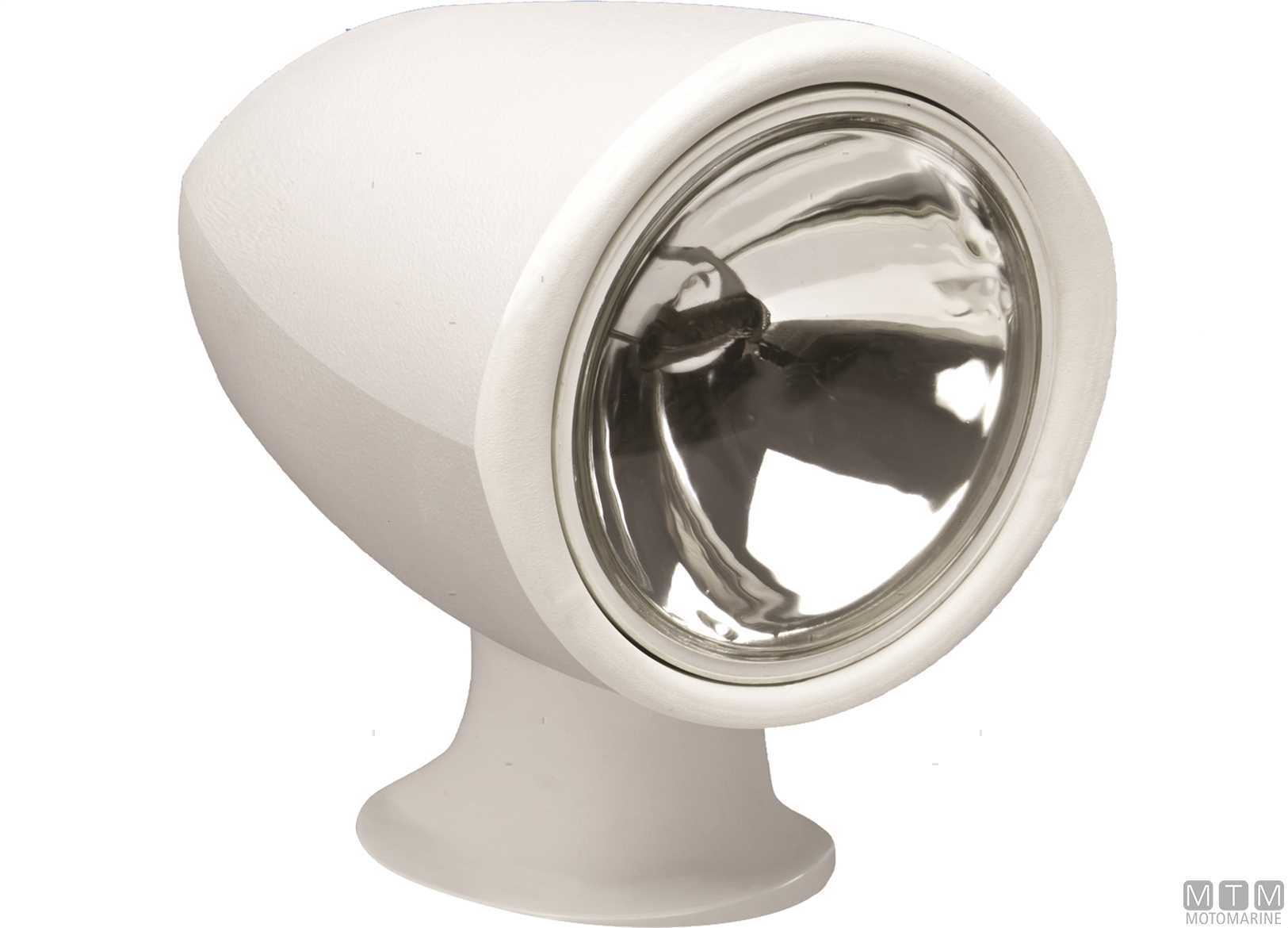 Faro orientabile con pannello di controllo impermeabile e cavo da 4 m. Cassa in Polimero antiurto resistente raggi UV. Bulbo alogeno H3 stagno dia 140 mm con fascio di luce a due modalità: diffusa e profonda. ↵Comando wireless opzionale con ricevitore e trasmettitore plug and play fino a 35 m. Se installato, sostituisce il pannello controllo cablato. Per mantenere entrambi, è necessario acquistare il pannello doppia stazione. ↵Dimensioni faro 220 x 190 x H245 mm, base 120 x 150 mm. Dimensioni pannello 92 x 122 mm, incasso 60 x 90 x H45 mm.