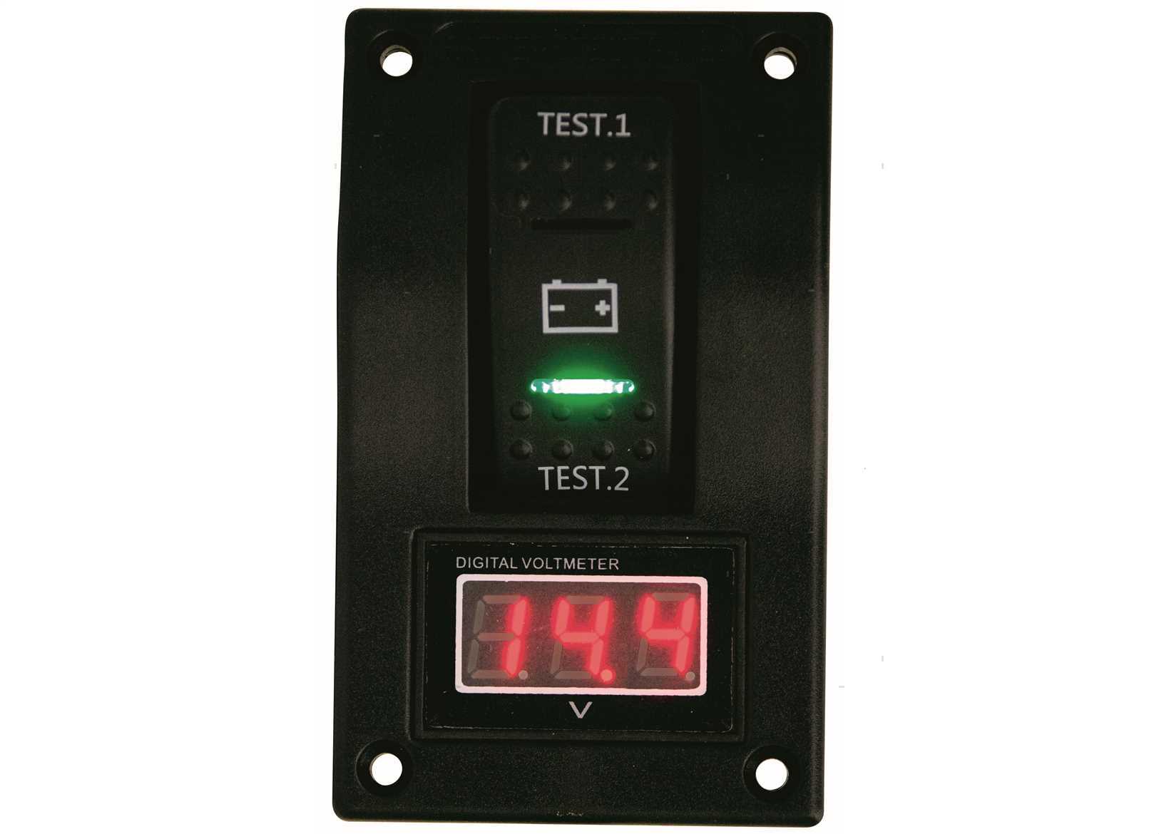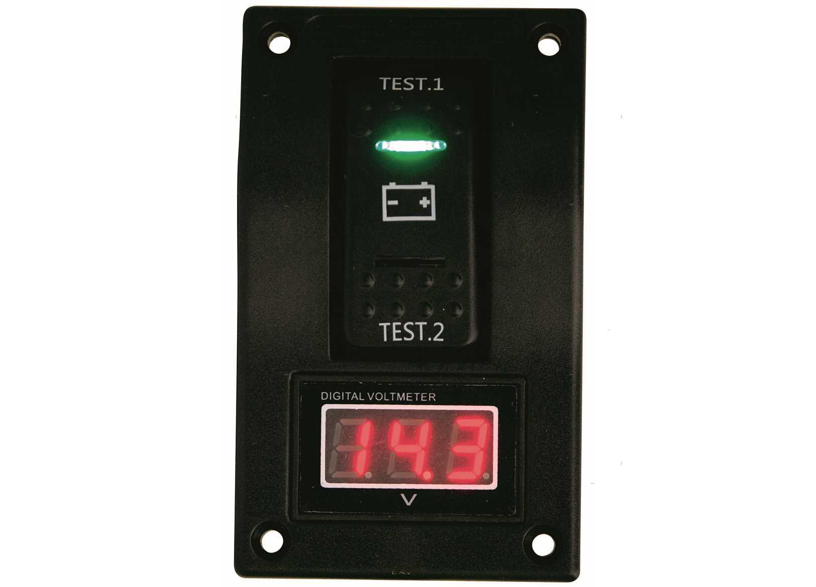 Pannello tester digitale per il controllo di 2 batterie. Plastica stabilizzata resistente UV con guarnizione in Nitrile. Con viti in Acciaio Inox ed etichetta prestampata.