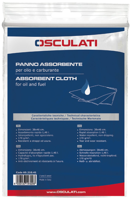 Panni assorbenti idrorepellenti, specifici per olio e carburante. Non sgocciolano ed assorbono rapidamente.