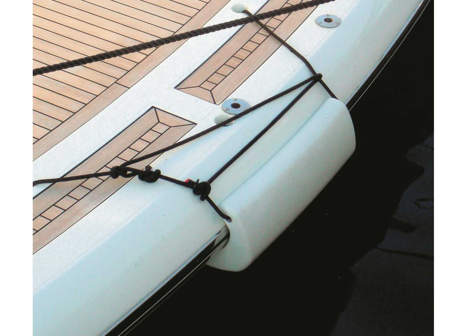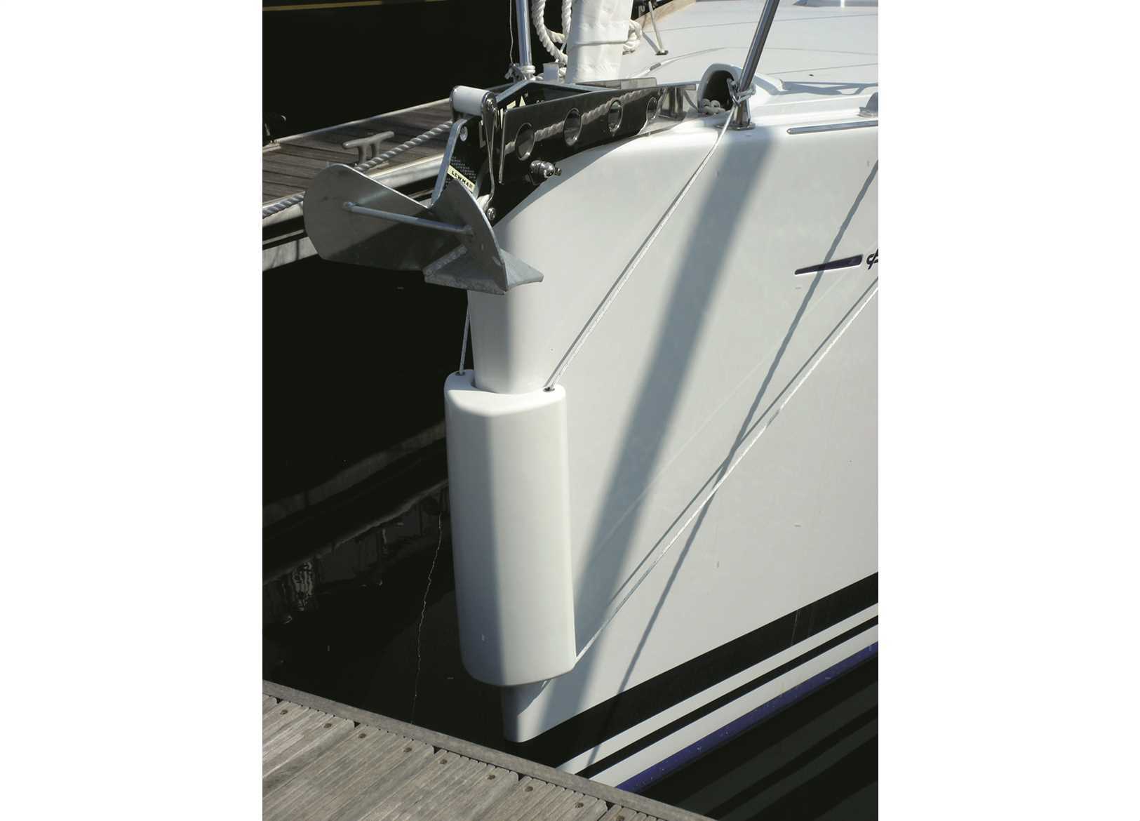 Paraprua/poppa specifico per barche a vela e catamarani, protezione totale quando si salpa l'ancora e quando si deve ormeggiare di prua o di poppa. Massa in Poliuretano resistente e morbido per il massimo assorbimento degli urti più violenti (non si sgonfia, non contiene aria). Con due fori passacima per un fissaggio sicuro a prua.
