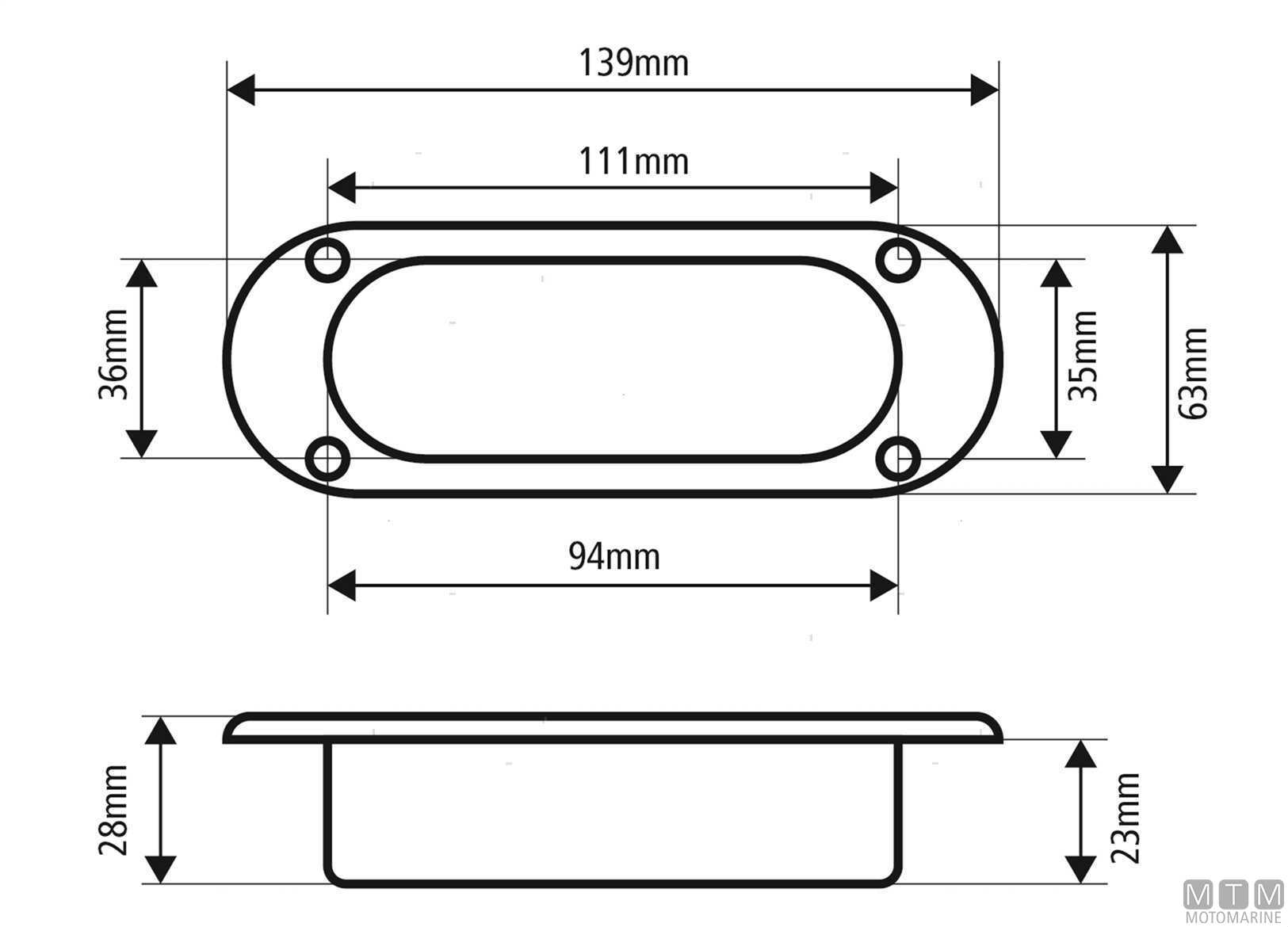 Passacavi a cubia in Acciaio Inox. L'altezza indicata è riferita all'incasso.