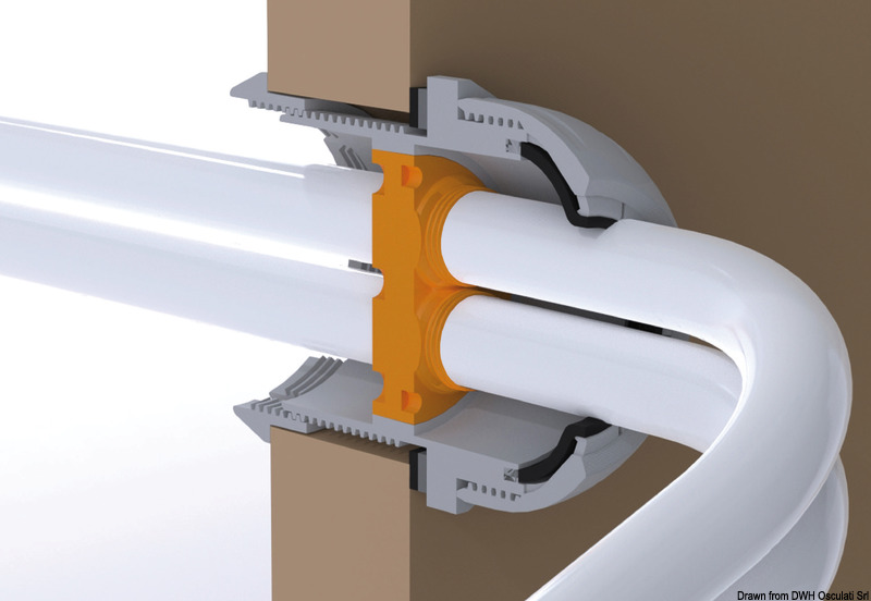 Per passaggi cavi elettrici attraverso paratie. Stampato in nylon ad alta resistenza con guarnizione interna sovra - stampata. Di facile installazione.
