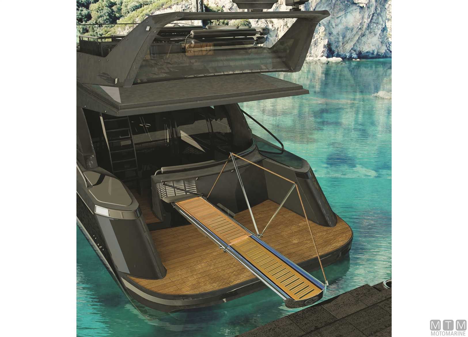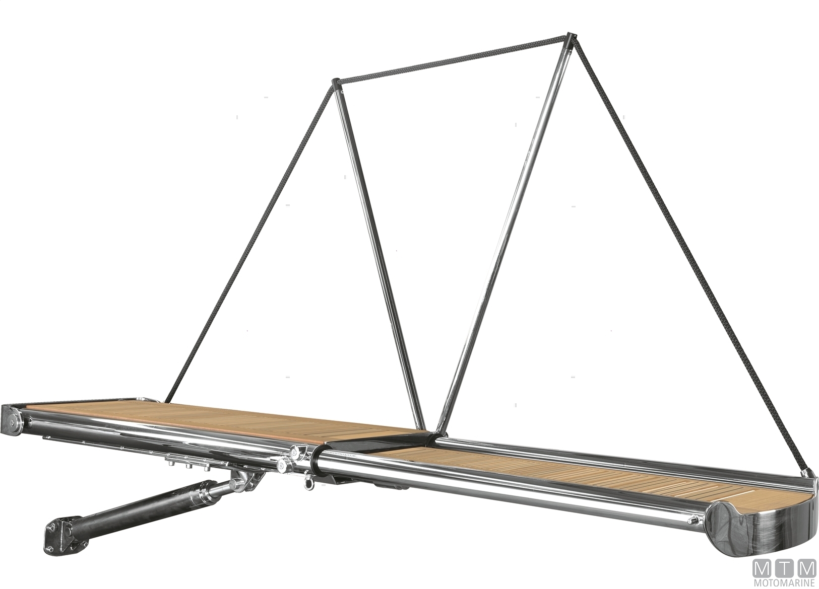 Passerella telescopica idraulica con struttura portante in Acciaio Inox tubolare AISI316L lucidato a specchio. Piano di calpestio in Teak con antisdrucciolo e luci di camminamento LED. Completa di centralina idraulica 800W e tubi da 3/8 per 3,5 metri di impianto. Si aziona con radiocomando e centralina elettronica a 10 canali cablata oppure con pannello comando a parete 127 x 87 mm completo di 10 metri di cavo. La passerella è idonea anche per sollevamento tender fino a 120 Kg.