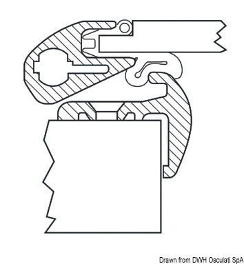 Con sporgenza di soli 25 mm dalla coperta. Approvato CE per AREA 2. Dotato di maniglie esterne per apertura dal ponte e frizione di tenuta in qualsiasi posizione anche a 95° di apertura. In alluminio anodizzato contro la corrosione e con profilo ricurvo per maggiore rigidità. Per quantità è possibile ottenere finitura bianca oppure alluminio lucido a specchio.