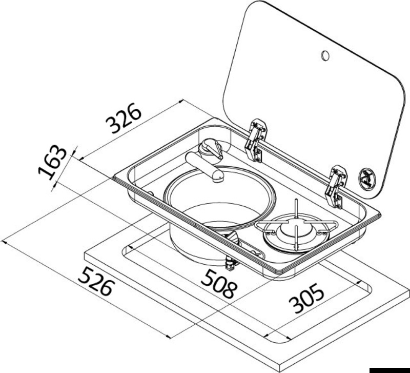 Piano cottura 1 fuoco - lavello DX con miscelatore