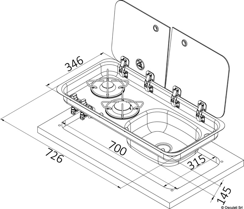 Piano cottura 2 fuochi - lavello SX con miscelatore