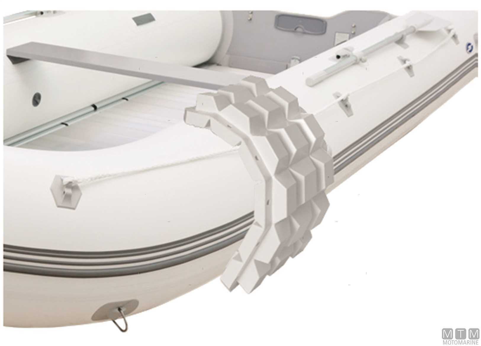 Parabordo con struttura elastica e pieghevole che permette di avvolgere e proteggere qualsiasi superficie irregolare o piana. Oltre alle fiancate può essere applicato a pali d'ormeggio, ringhiere, angoli e come salvaprua.