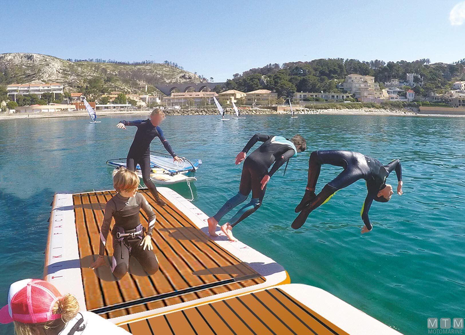 Resistente piattaforma galleggiante in rete di Poliestere Dropstich ad alta resistenza spalmata PVC con struttura interna a nido d'ape. Si può gonfiare e sgonfiare e può essere facilmente piegata con ingombro minimo. Completa con pagliolo antiscivolo in EVA e d-rings in Acciaio Inox per essere assicurata all'imbarcazione oppure ad altre strutture galleggianti o banchine. Può essere usata come piattaforma ricreativa, come materassino d'acqua oppure come piattaforma da manutenzione per lo scafo. Scaletta opzionale in Alluminio 3 gradini facilmente amovibile grazie alle piastre attacco già presenti sui modelli 200/400, da incollare invece sul modello 150.