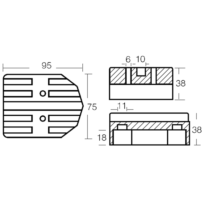 Anodo piede 50/200 HP alluminio diam. foro 8
