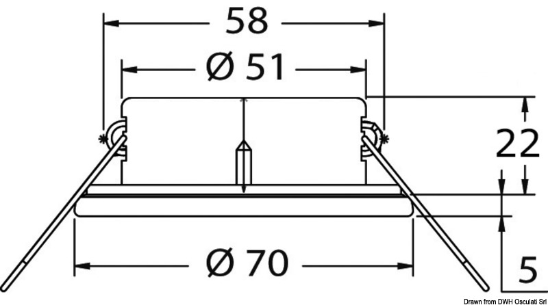 Corpo in acciaio inox. Lente in vetro satinato. Doppio sistema di fissaggio: con viti nascoste o con molle interne inox.