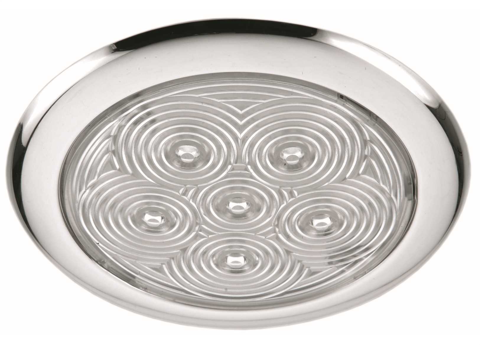 Plafoniere LED 12V a basso profilo in Acciaio Inox. ↵Luce bianca calda 3000°K, consumo 3W.