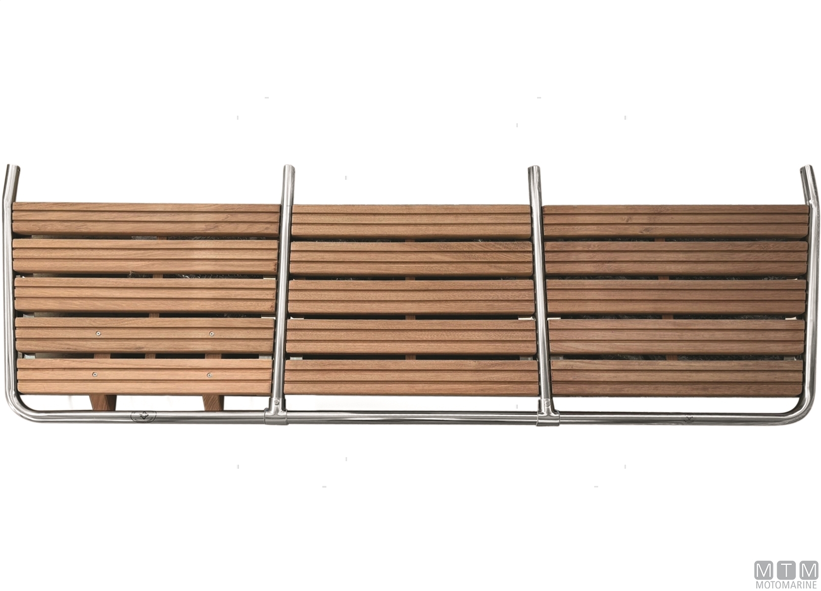 Plancia di poppa larga in doghe di legno marino Doussie con telaio in Acciaio Inox AISI 316.