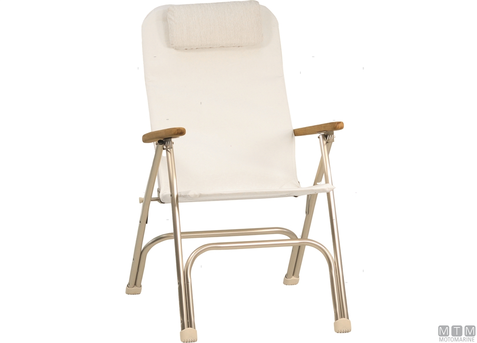 Comoda ed elegante poltroncina Marathon R120 di Forma reclinabile in quattro posizioni con poggiatesta regolabile. Leggero e robustissimo telaio in Alluminio Anodizzato con snodi in fusione perfettamente rifiniti. Tessuto antimacchia Recacril Marine Grade. Ferramenta e viti in Acciaio Inossidabile.