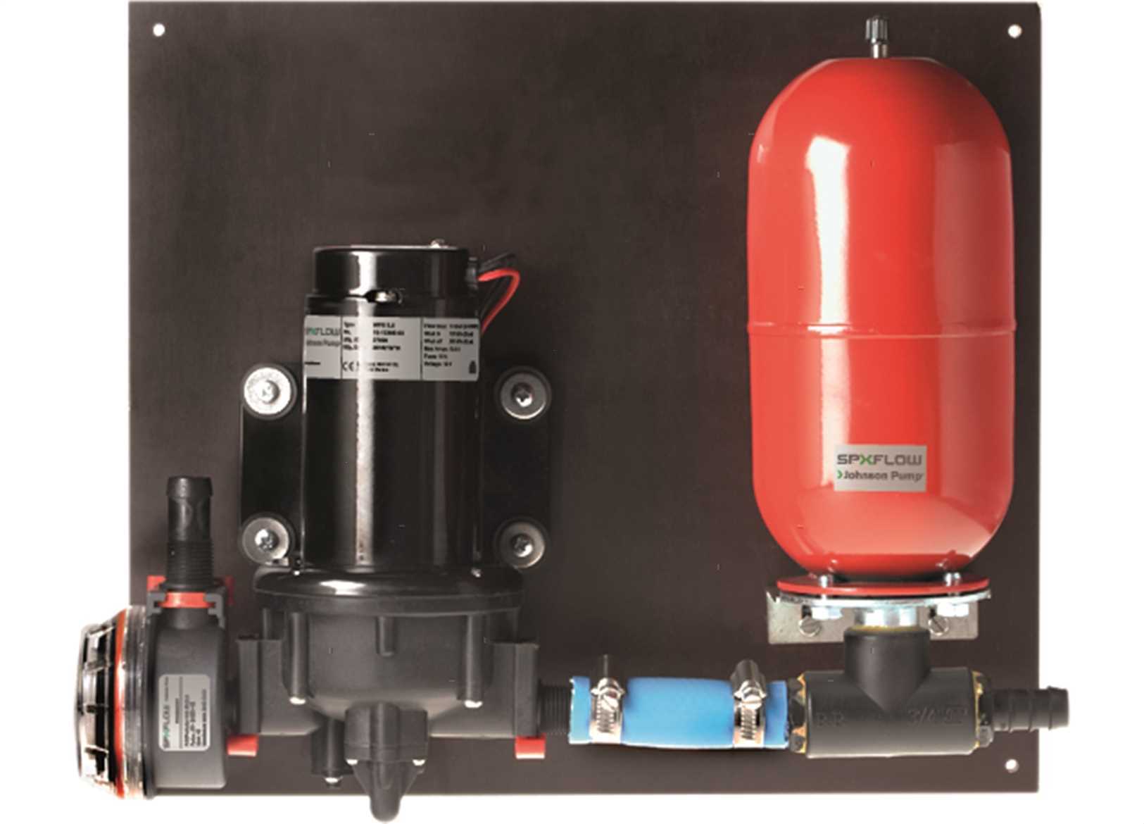 Pompa di media capacità Aqua Jet WPS con una portata di 11 l/min o 13 l/min fissata su pannelloper un'installazione semplice ed efficace. L'unità comprende un filtro d'ingresso PUMProtector e unserbatoio di accumulo pre-pressurizzato da 2 litri. Pressione spegnimento: 2.8 bar / 41 psi.
