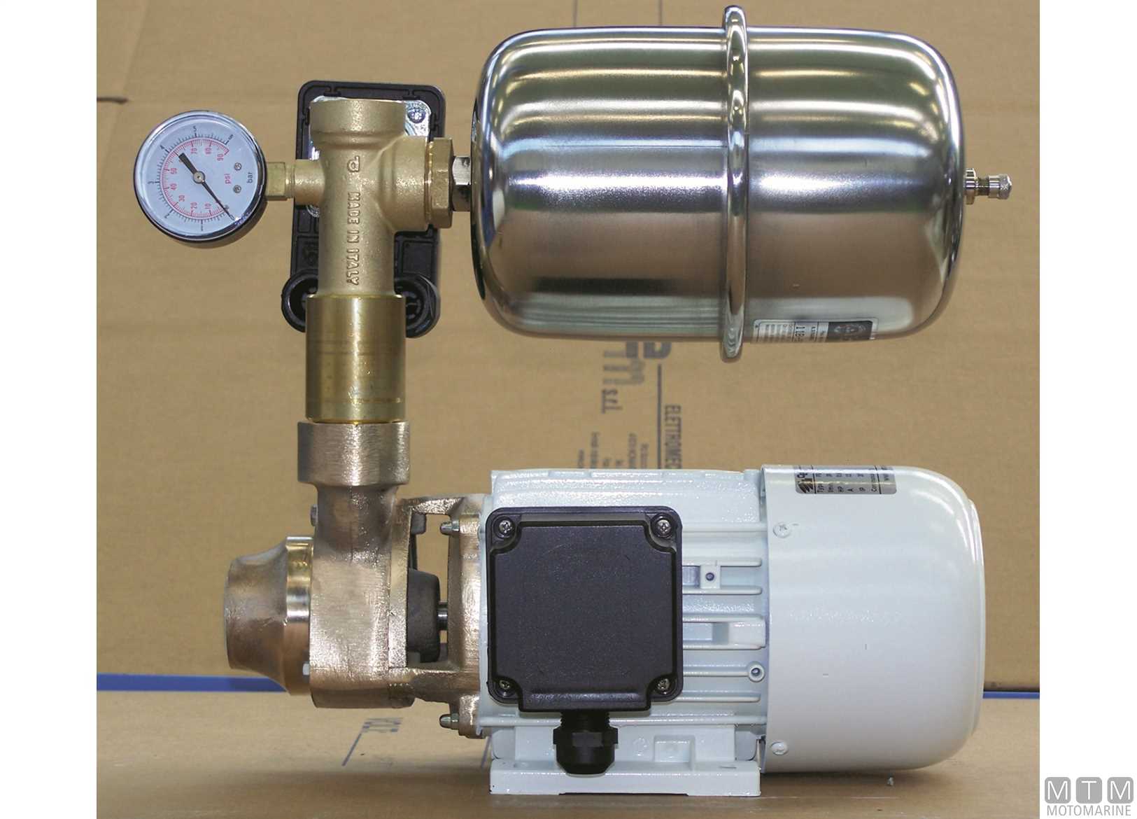 Gruppo pressione autoclave con serbatoio di espansione in Acciaio Inox per imbarcazioni da 10 a 20 m.↵Pompa e girante in Bronzo.