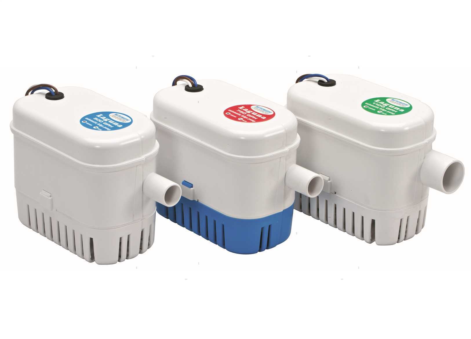 Pompe di sentina automatiche Ocean Laguna, si attivano da sole in presenza di acqua in sentina. Motore elettrico raffreddato ad acqua per una maggiore durata. Base filtrante apribile per una facile pulizia.
