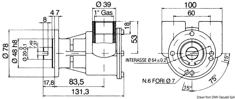Corpo in bronzo, giranti in neoprene, da collegare al motore.