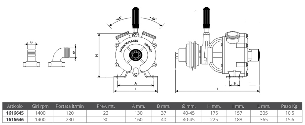 Pompain bronzo autoadescante a puleggia con frizionea innesto manuale, girante in bronzo.Autoadescante fino ad un massimo di 6 mt.