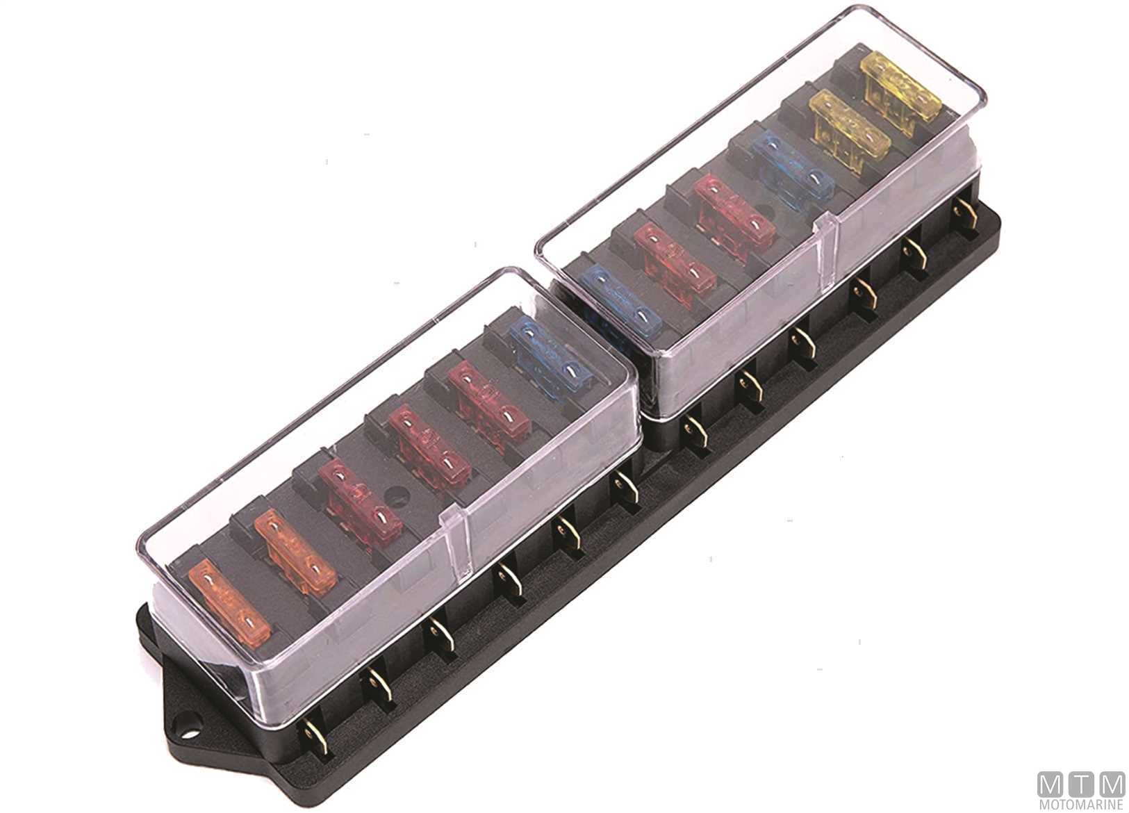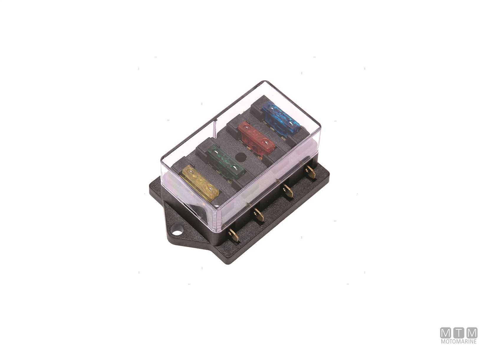 Scatola portafusibili con coperchio di protezione per fusibili lamellari Unival. Corpo in ABS antiurto fiamma ritardante e contatti 6,3 mm in Rame Nichelato max 40A.