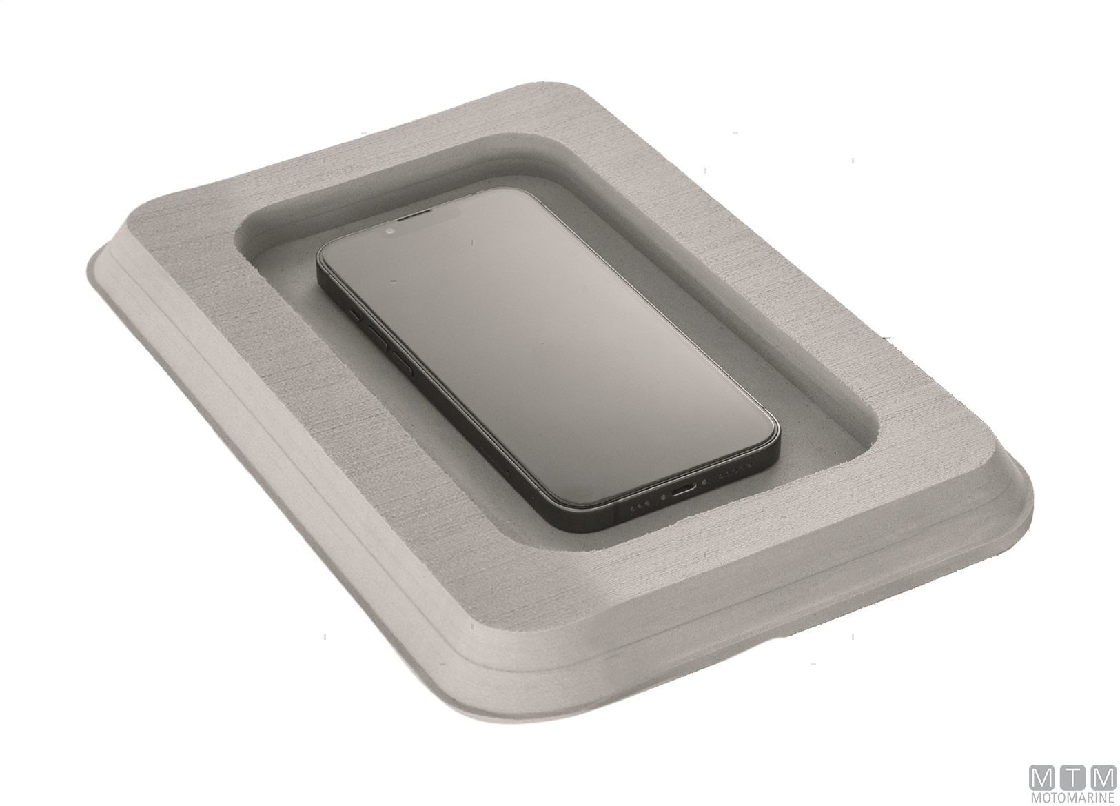 Portaoggetti in materiale espanso EVA a cellula chiusa con adesivo 3M pronto per essere applicato. Ideale come punto di appoggio per il cellulare, è perfetto anche come portaoggetti da cabina e da cruscotto. Costruito in materiale espanso a due strati con 20 mm di spessore, resistente raggi UV, è molto facile da pulire, non assorbe le macchie.