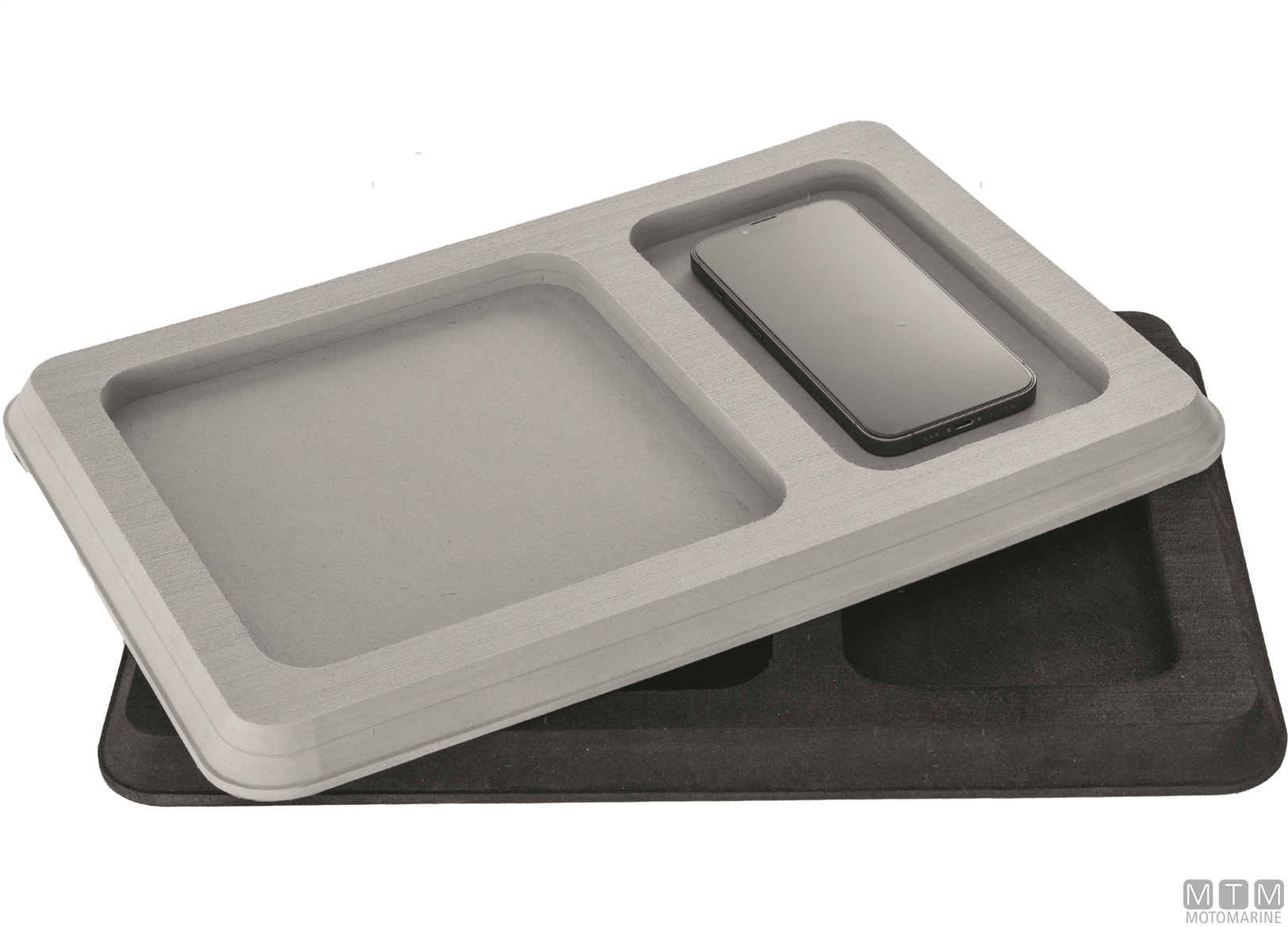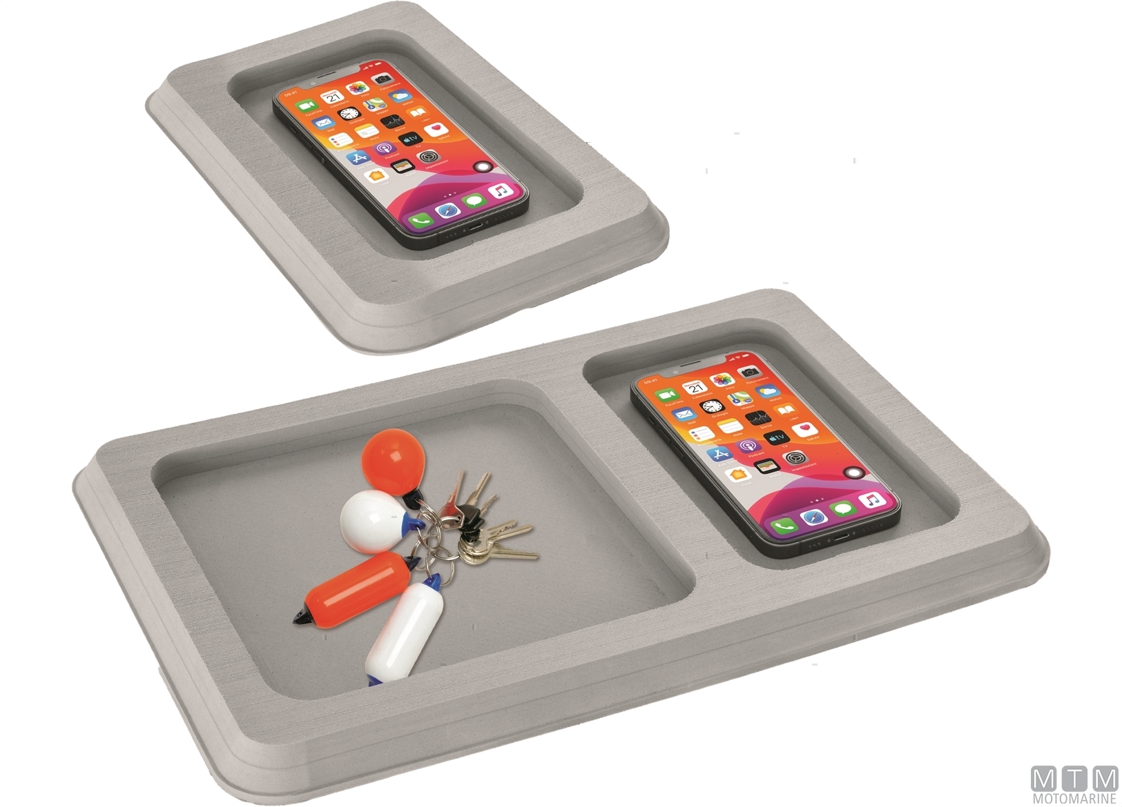 Portaoggetti in materiale espanso EVA a cellula chiusa con adesivo 3M pronto per essere applicato. Ideale come punto di appoggio per il cellulare, è perfetto anche come portaoggetti da cabina e da cruscotto. Costruito in materiale espanso a due strati con 20 mm di spessore, resistente raggi UV, è molto facile da pulire, non assorbe le macchie.
