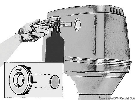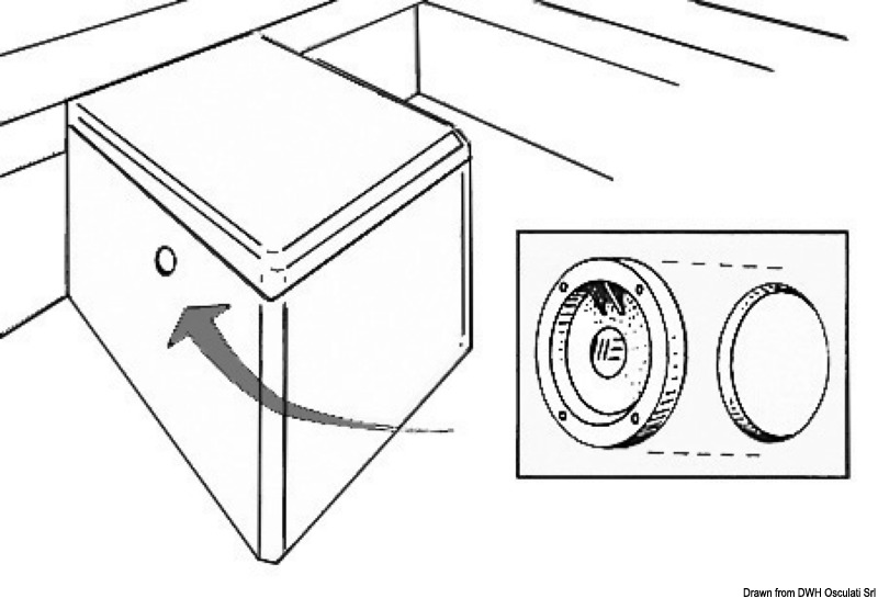 Permette di accedere al vano motore con un estintore, senza aprire il vano. Il foro é chiuso da una membrana in PVC stagna, a sfondamento.