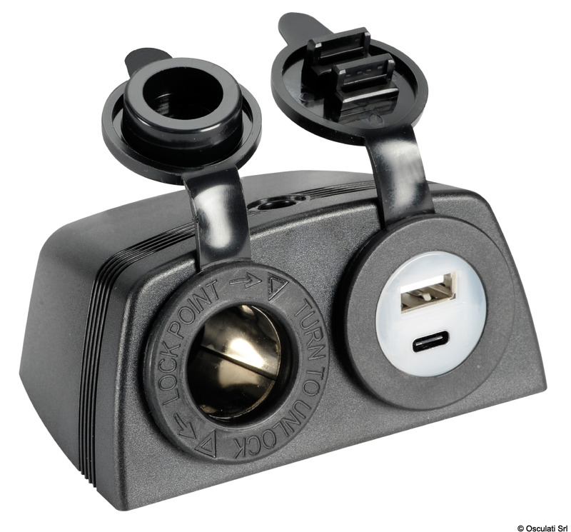 Presa accendisigari + USB-A + USB-C con carenatura
