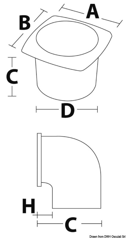 Presa d'aria ABS con collare 90° mm 92 x 92 Nera