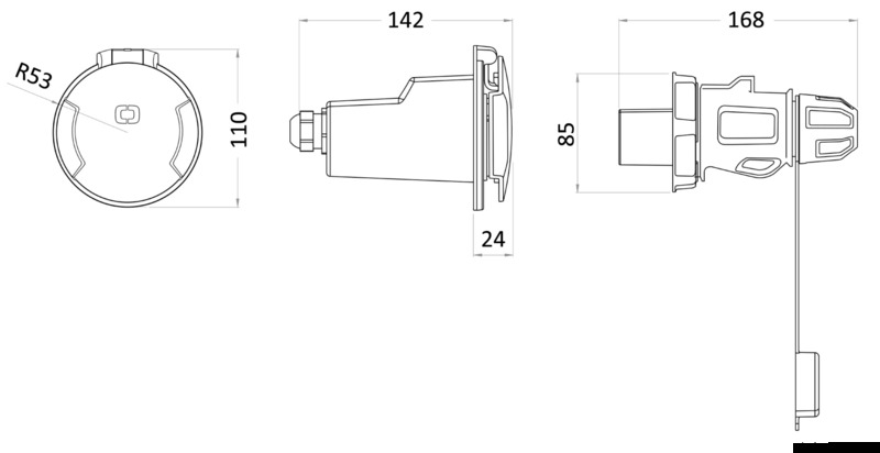 Presa e spina nautica per cavo elettrico banchina da 32A - 220V. Realizzati in PA6, dotata di contatti ad alta resa energetica e tappo di chiusura IP67. La spina è disegnata per garantire una impugnatura ergonomica e la ghiera rotante permette di assicurarla saldamente alla presa in barca con una chiusura stagna IP67, mentre il tappo in gomma garantisce una tenuta IP44 quando non è collegata. Il design pulito e le ridotte dimensioni permettono di poter installare comodamente la presa in qualsiasi punto del pozzetto. Conforme agli standard europei di sicurezza IEC 60309-5.