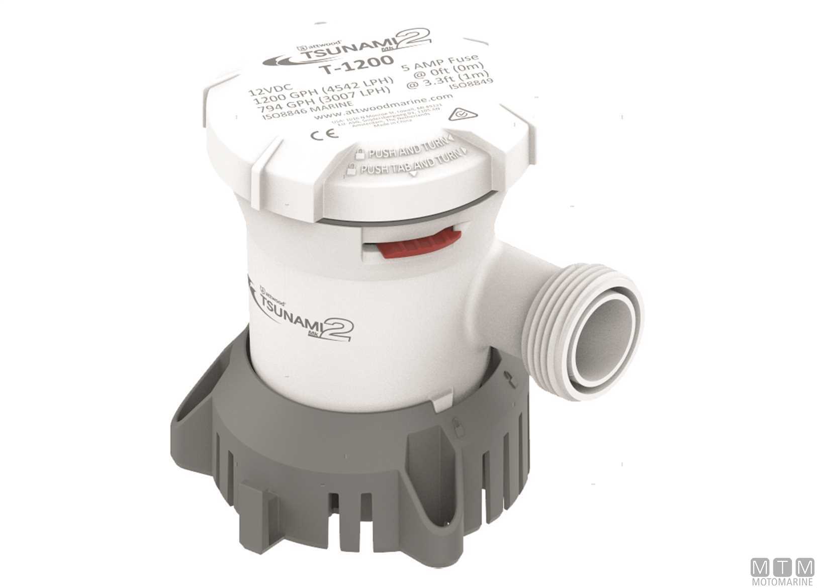 Pompe di sentina sommergibili Attwood Tsunami MK2 con base e testa sganciabili per una facile pulizia. Motore sigillato protetto da danni per elettrolisi con girante X-Air che impedisce l'attivazione a vuoto e l'ingresso di aria nelle tubazioni di scarico. Bocche filettate da 1"3/8 (35mm) da completare con raccordi orientabili dritti oppure a gomito completi di valvola di non ritorno.