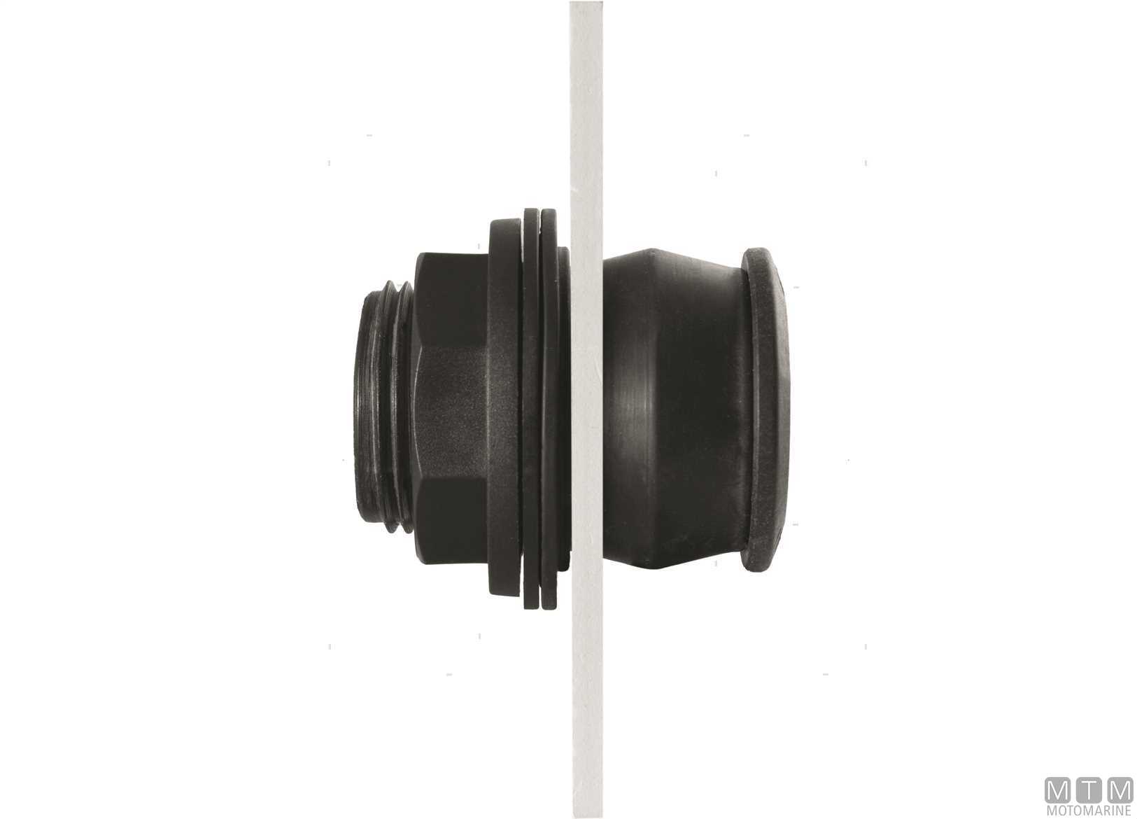 Raccordo a innesto rapido in Polipropilene con guarnizione in EPDM alimentare per ogni tipo di serbatoio acqua. Montaggio dall'esterno con un semplice foro. Quando il raccordo viene avvitato, la guarnizione si comprime e garantisce una tenuta stagna.